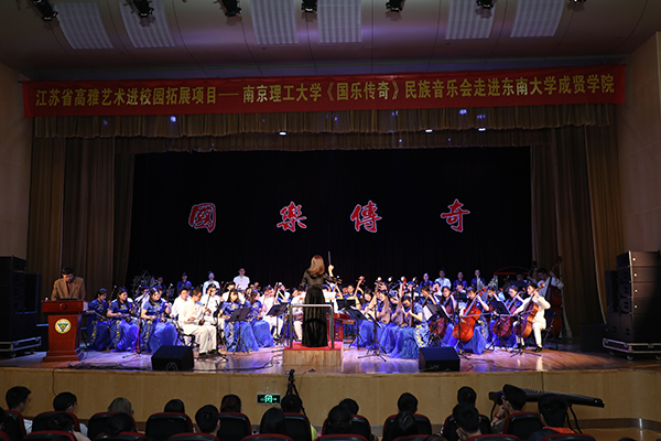 5月10日晚上,2018年江苏省高雅艺术进校园拓展项目南京理工大学民族乐团《国乐传奇》音乐会受邀在520夫妻 大学生活动中心313报告厅演出,此次演出由省教育厅主办,南京理工大学民族乐团承办,全校师生共计800人观看。