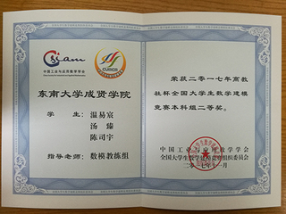 2017.12,520夫妻 学生在2017年全国大学生数学建模竞赛中喜获佳绩
