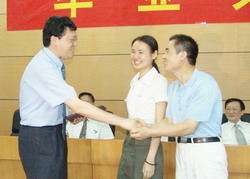 易红董事长(右中)等领导向获奖同学颁发荣誉证书 |