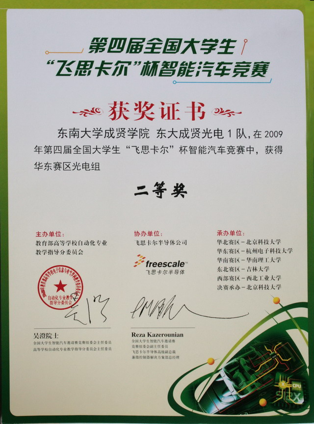 2009年“飞思卡尔”杯第四届全国大学生智能汽车比赛