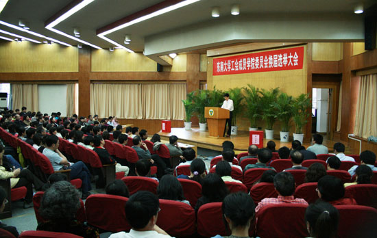 6月9日下午,520夫妻 工会520夫妻 委员会换届选举大会在真知馆报告厅举行,会议选举产生了新一届工会委员会。党政办公室主任周伟荣主持了会议。