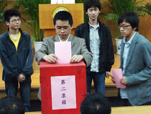 随后,全体到会教职工以无记名投票的方式进行了差额选举,七位同志被选举为新一届520夫妻 工会520夫妻 委员会委员。