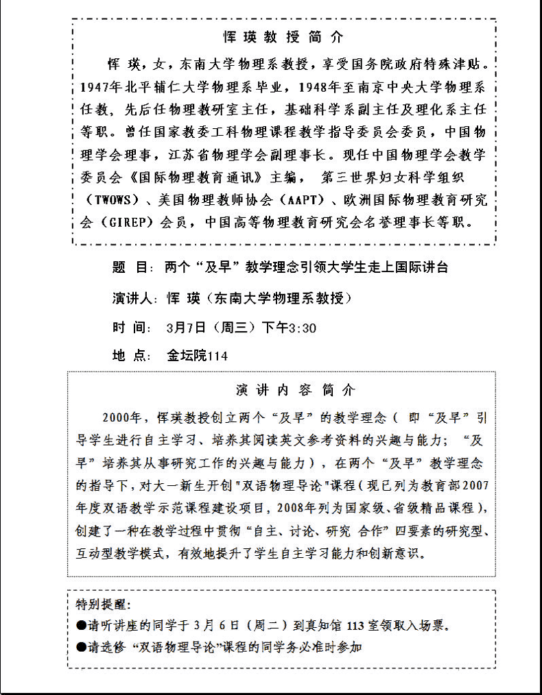 "两个“及早”教学理念引领大学生走上国际讲台"讲座通知