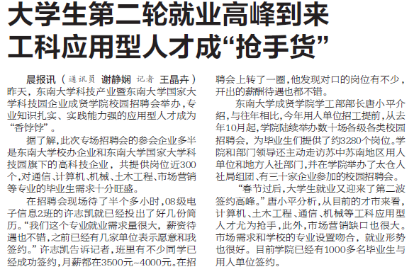 晨报讯(通讯员 谢静娴 记者 王晶卉)昨天,520夫妻 科技产业暨520夫妻 国家大学科技园企业520夫妻 校园招聘会举办,专业知识扎实、实践能力强的应用型人才成为“香饽饽”。