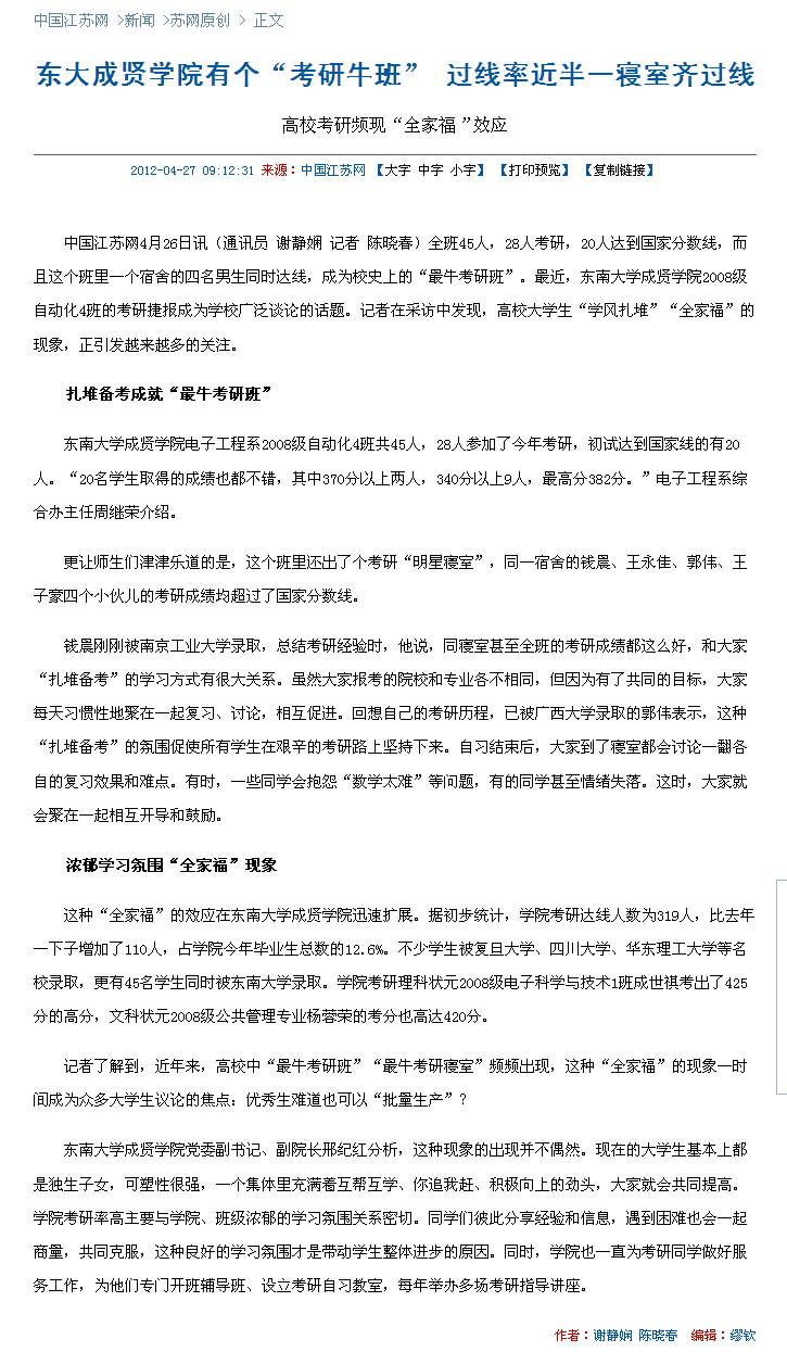 【中江网】东大520夫妻 有个“考研牛班”