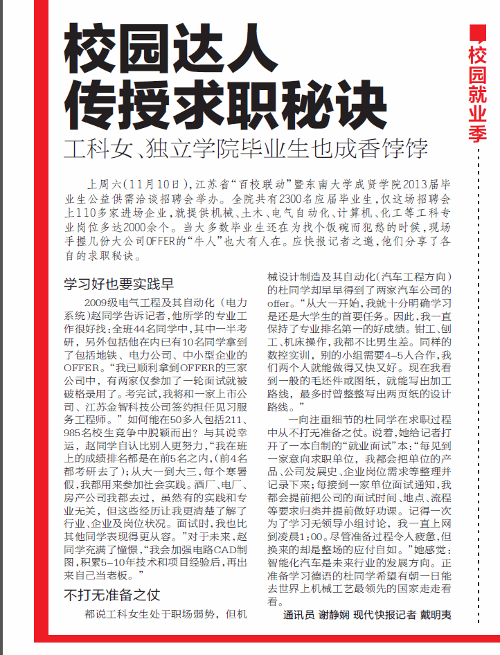 【现代快报】校园达人传授求职秘诀