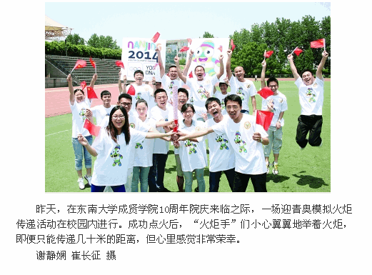 【扬子晚报】迎青奥模拟火炬传递在成贤进行