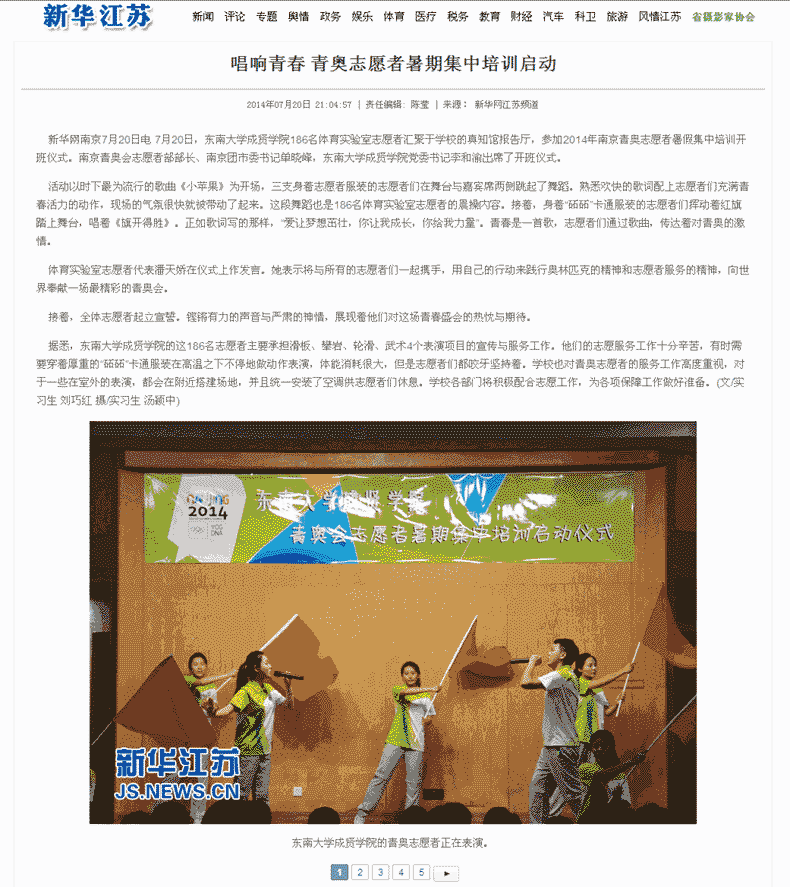 【新华网】唱响青春 青奥志愿者暑期集中培训启动