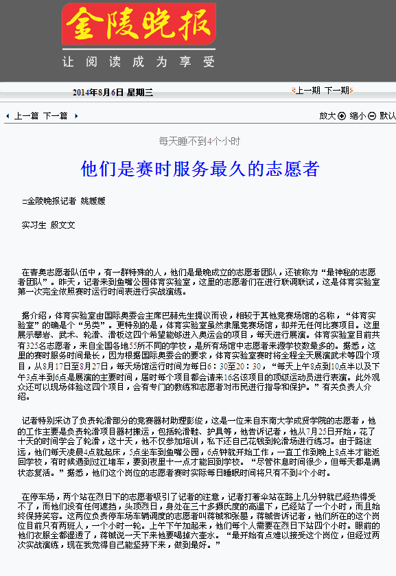 【金陵晚报】他们是赛时服务最久的志愿者