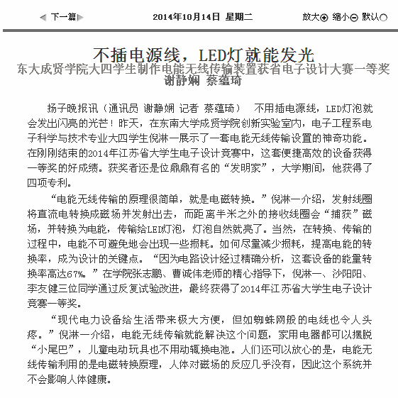 【扬子晚报】不插电源线,LED灯就能发光