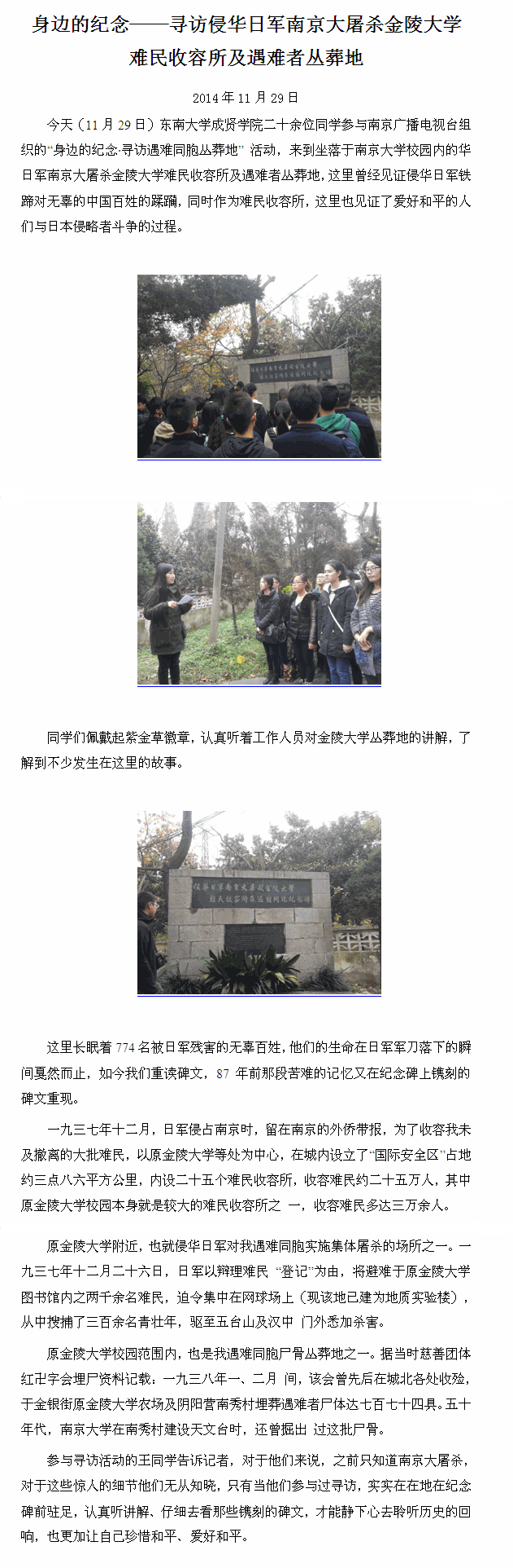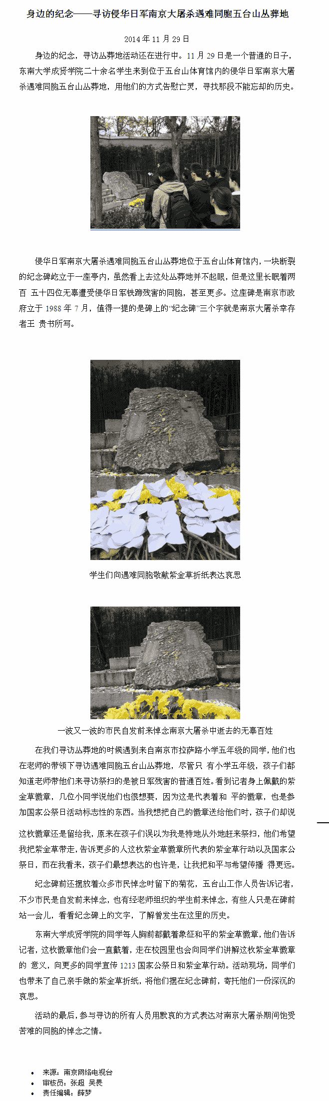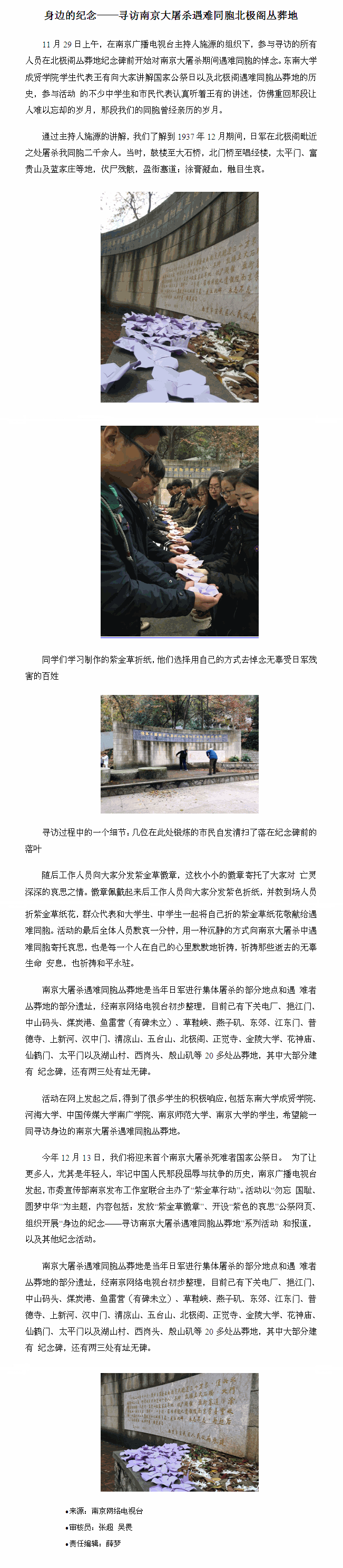 【南京网络电视台】520夫妻 学生参与“国家公祭•紫金草行动”