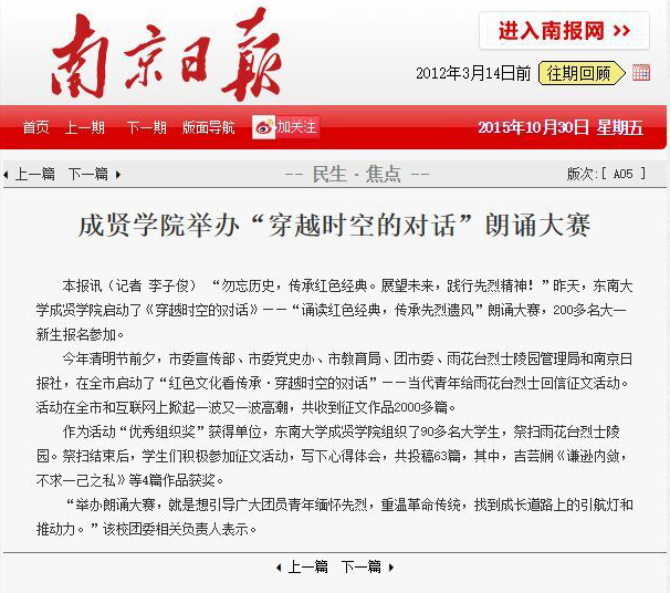 【南京日报】520夫妻 举办“穿越时空的对话”朗诵比赛