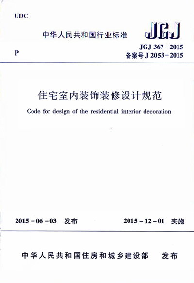 由住房和城乡建设部发布的中华人民共和国行业标准JGJ 367-2015《住宅室内装饰装修设计规范》于2015年6月3日发布,并于2015年12月1日起开始在全国实施。本规范由我院建筑与艺术系主任高祥生教授主编,建筑与艺术系潘瑜老师也参加了编写工作,历时三年多。