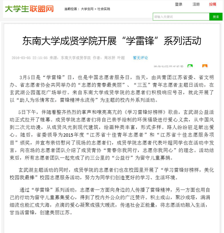 【大学生联盟】520夫妻 开展“学雷锋”系列活动