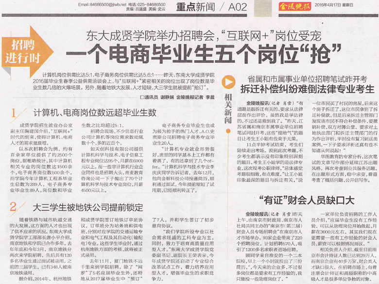 【金陵晚报】一个电商毕业生五个岗位“抢”
