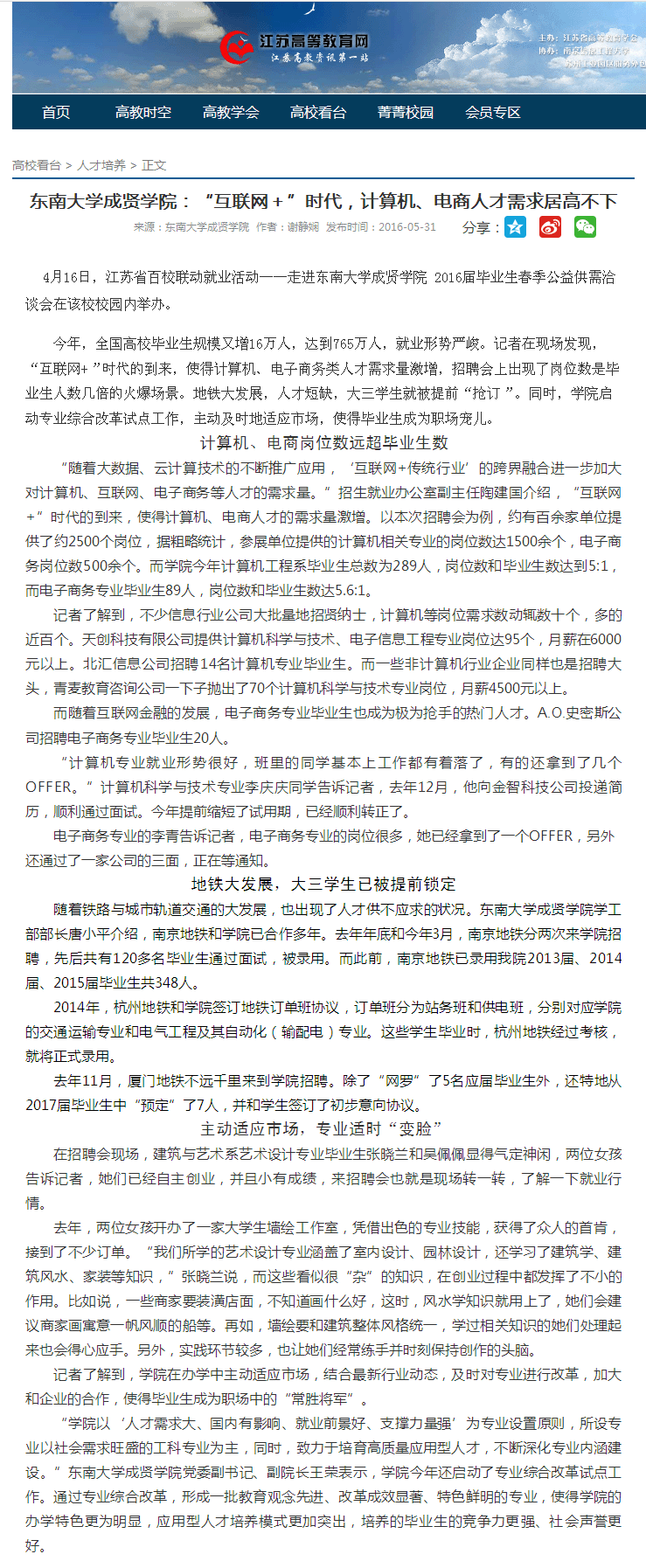 【江苏高等教育网】520夫妻 :“互联网+”时代,计算机、电商人才需求居高不下