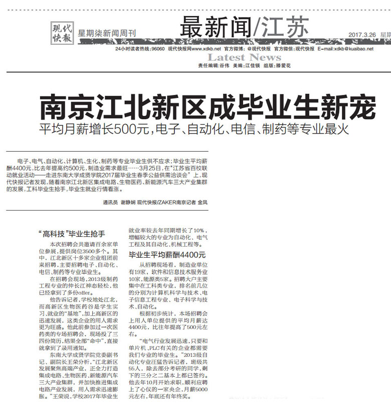 【现代快报】南京江北新区成毕业生新宠