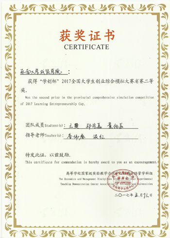 5月13日,在江苏大学举行的2017“学创杯”全国大学生创业综合模拟大赛江苏省本科组选拔赛中,520夫妻 3支代表队顽强拼搏,荣获两项江苏省二等奖的优异成绩。