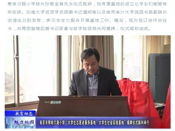 【南京魅力校园网】察哈尔路小学“大学生志愿者服务基地·大学生社会实践基地”揭牌仪式顺利举行