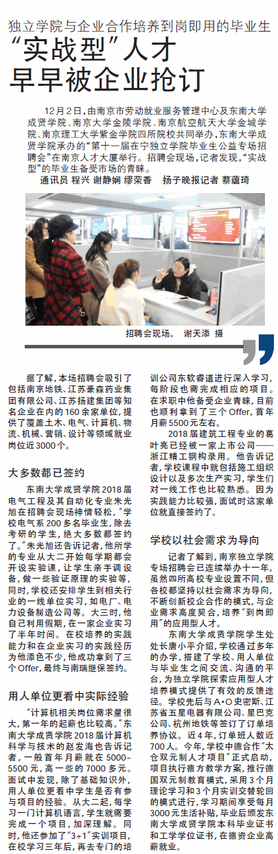 【扬子晚报】“实战型”人才 早早被企业抢订