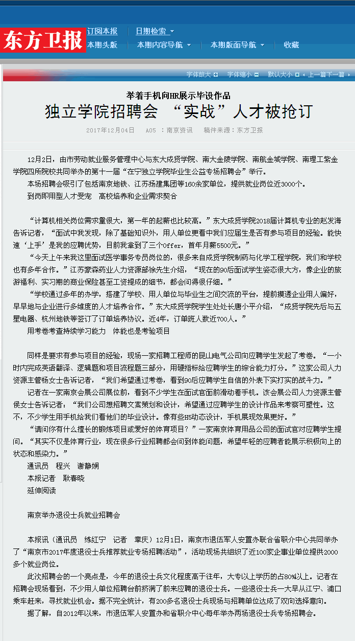 【东方卫报】独立学院招聘会 “实战”人才被抢订