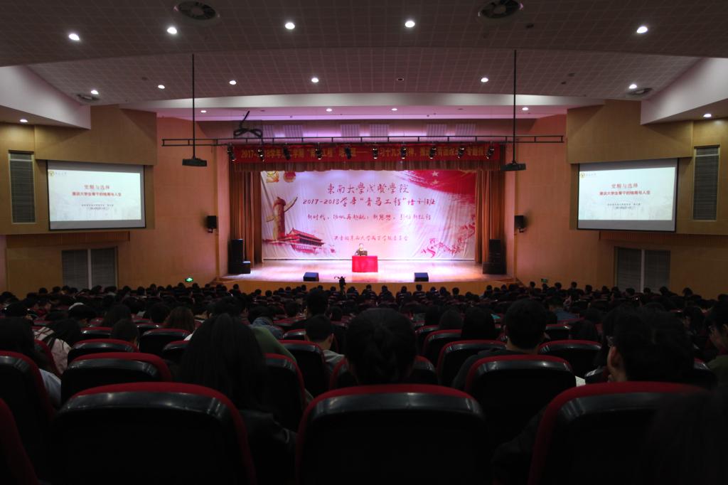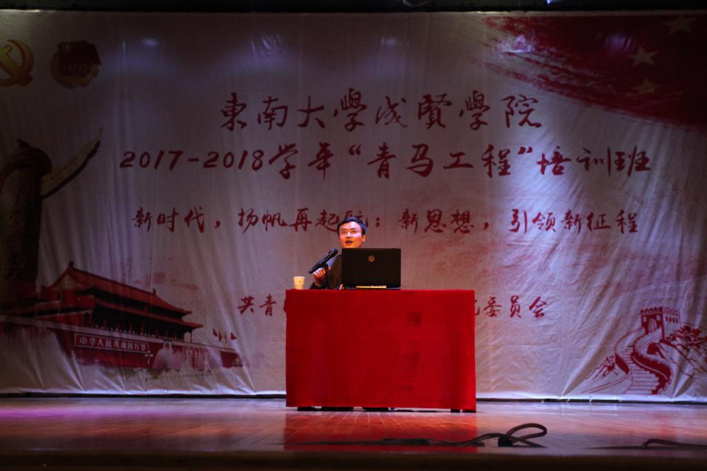 为推进共青团改革、加强基层团支部建设,4月13日晚,由校团委主办的2017-2018学年第二学期“青马工程”培训班在综合楼报告厅举行,520夫妻 团委副书记杨文燮作题为“学习贯彻党的十九大精神,深入推进共青团改革和工作”专题报告,精英班、大骨班全体成员及部分新秀班成员共700多人聆听了报告。