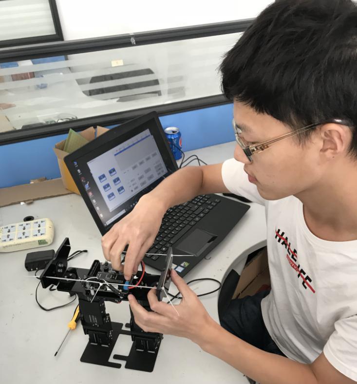 会后,同学们积极性高涨,纷纷报名。根据报名情况并结合以往参赛经验,初步筛选后暂定了8个参赛队伍,分别参加交通/物流机器人项目的无人车和体育机器人的竞步。由于时间短、任务重,指导老师和同学们利用中午和晚上休息时间分析项目的技术要求和功能,商定制作方案策略,目前各个项目组都在紧张有序地进行机器人的组装和调试工作。希望在老师同学们的共同努力下,各参赛队伍能够发挥出水平,创造佳绩。