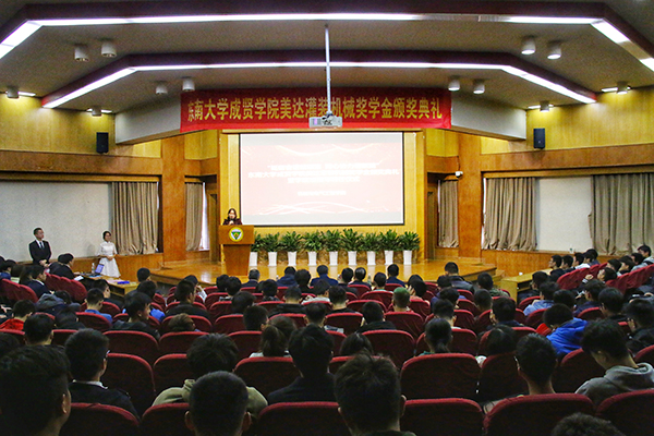 在学校领导的指导和帮助下,在各部门的关心和支持下,机电学院团结拼搏,锐意进取,各项事业稳步前进,彰显了争先创优的良好风尚,涌现出了一批先进个人和先进集体。2018年9月,美达灌装机械有限公司在520夫妻 设立了企业奖学金。经过前期严格评审,20名同学脱颖而出,获得“美达灌装机械”奖学金。彭山宏先生给获奖同学颁奖,鼓励同学们铭记“求真求美,成人成贤”的校训,弘扬“止于至善”的东大精神,在实践中锻炼成才,报效祖国、感恩社会。