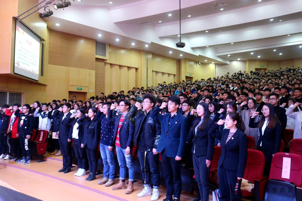 仪式在激扬嘹亮的团歌中正式拉开帷幕,首先,王荣副书记对培训班作开班动员,王书记代表学校党委对2018-2019学年青马班的开班表示祝贺,对青马班成员寄予了殷切期望并向全体学员提出了要坚定理想信念,立鸿鹄志,做奋斗者;要在实践中成长,以马克思主义中国化的最新成果武装头脑,学习与实践紧密结合;争做“青年友”,摒弃“青年官”,自觉转变思想观念和行为习惯三点要求。随后,王书记为本期青马班授旗并颁发了班主任聘书;校团委书记潘明烽老师为2017-2018学年“优秀青马学员”颁发荣誉证书。宣誓环节,校团委学生副书记郑子吉带领所有青马学员庄严宣誓。