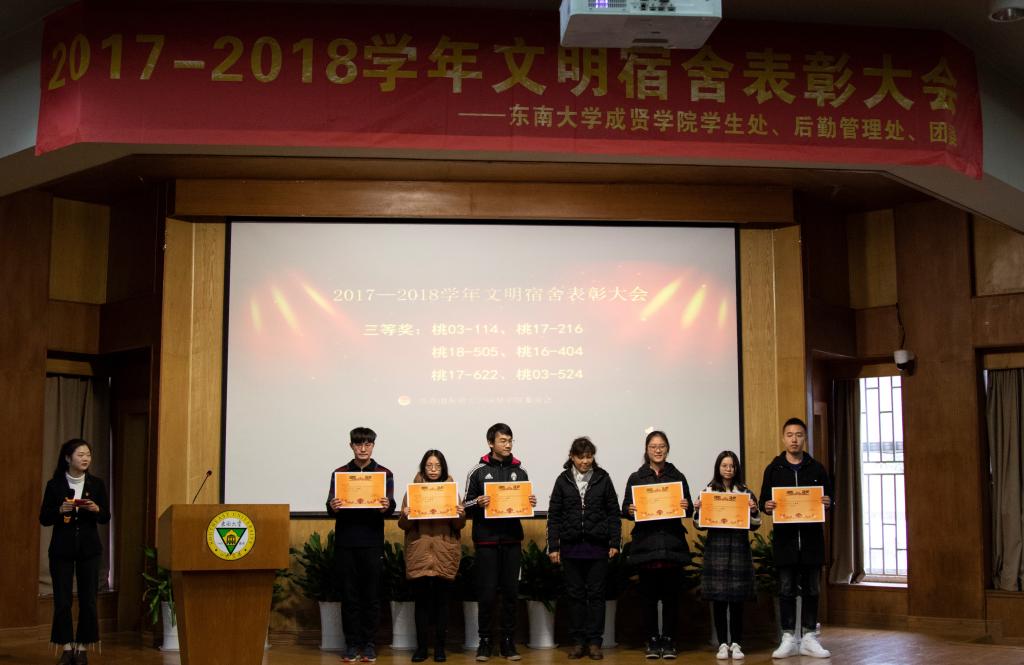 构建文明和谐的宿舍氛围不仅有利于同学们的身心健康,也有利于提升精神素养;文明宿舍的表彰展现了成贤学子的精神风貌,丰富了宿舍的文化内涵,进一步推动了校园文明建设。