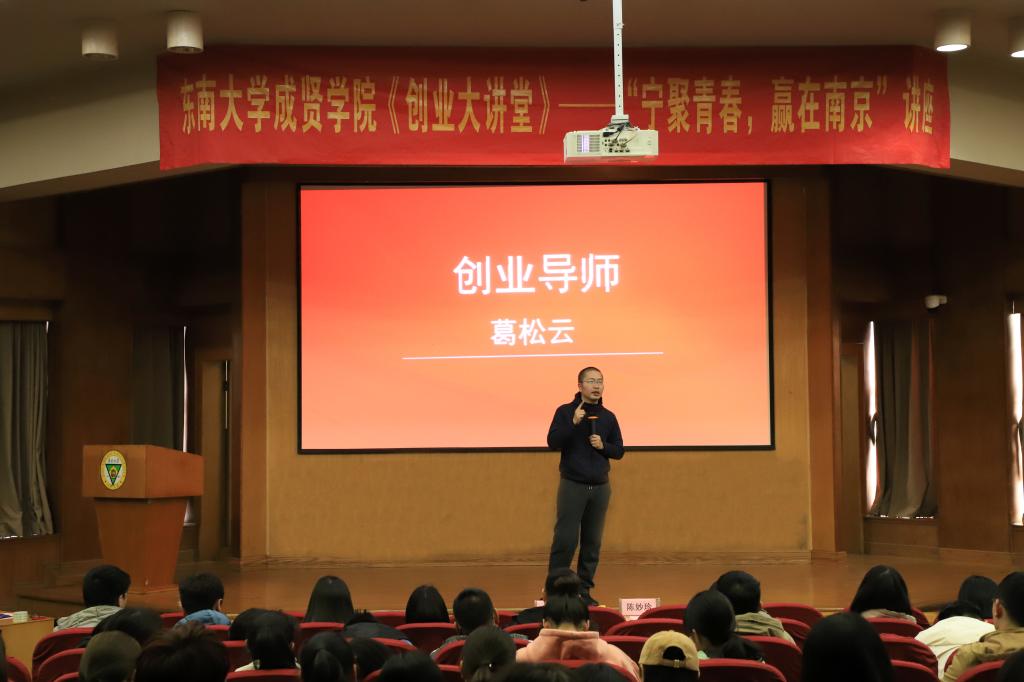 3月14日,由南京市人力资源和社会保障局、校团委、学生处就业办、“苏青合伙人”孵化器联合主办的“创业大讲堂”系列讲座之《宁聚青春,赢在南京!》在真知馆报告厅开讲。江苏省创业名家导师团导师葛松云、南京市劳动就业服务管理中心创业科科长陈妙珍分别担任主讲,全校260余名师生共同聆听了讲座。