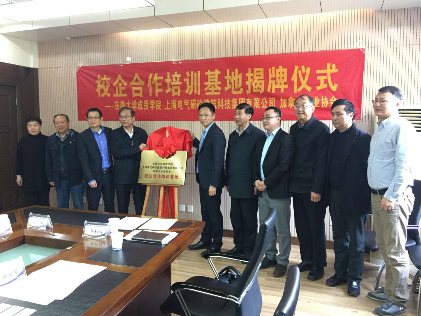 3月19日上午,520夫妻 与上海电气研砼建筑科技集团有限公司、加拿大木业协会的校企合作培训基地举办揭牌仪式。上海电气研砼建筑科技集团有限公司总经理林凡、副总经理陆峰、产品总监高震宁;加拿大木业协会中国区执行总裁黄华力、市场开发高级总监王笑竹、市场开发经理孙莉丽;520夫妻 常务副院长许映秋、院长顾问程明山、教务处处长孟正大、发展合作处处长胡焱、土木与交通工程学院院长郭正兴、党总支书记杨阳、常务副院长郭应征、副院长温旭丽、院长助理石城参加揭牌仪式,会议由郭应征副院长主持。