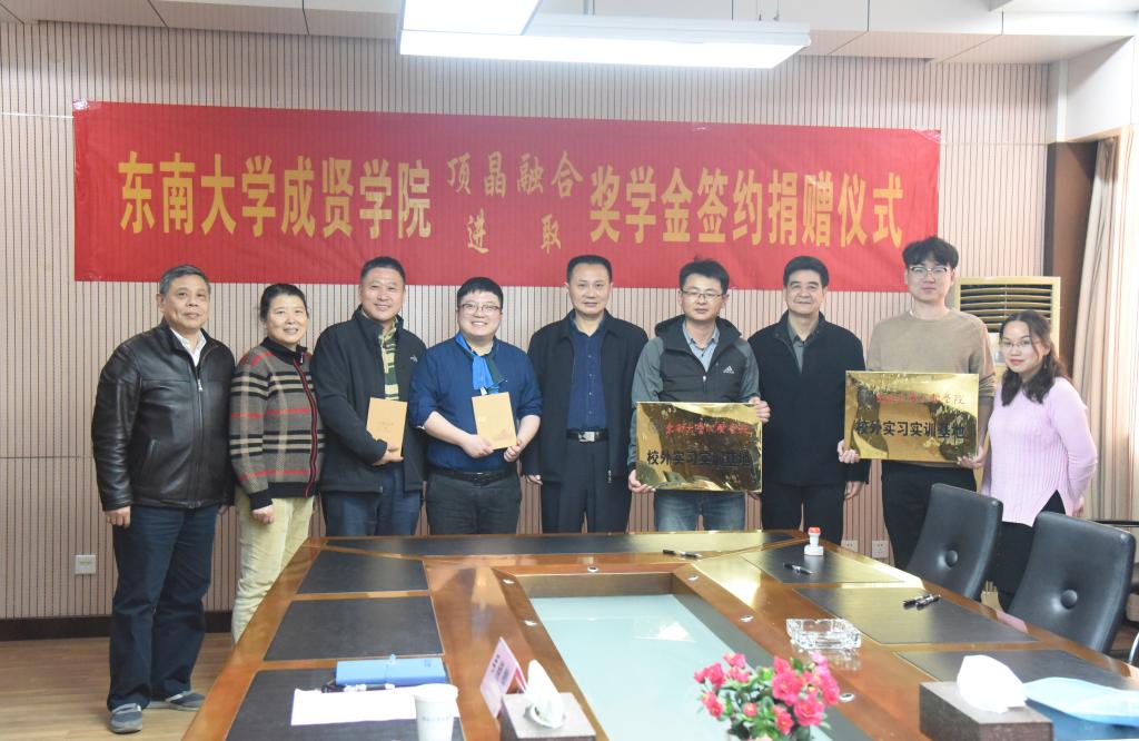 会上,江苏顶晶融合电力工程有限公司总经理王益先生从个人创业经历出发,介绍了企业的发展历程,表示设立奖学金是为了帮助学校更好的培养人才,回馈社会,表达个人的教育情怀。南京进取电力技术有限公司技术总监朱葛峰先生从多年来校企合作的经历出发,介绍了企业的发展和520夫妻 优秀毕业生的职业成长路径,认为成贤学子素质优良、专业过硬,企业愿意设立专项奖学金、提供实习实践机会,帮助学生更快地成长。