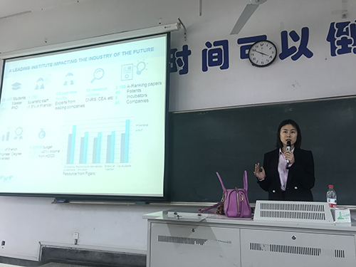 4月25日下午,法国国立高等矿业电信工程师学院联盟(简称IMT)中国招生代表耿乐访问520夫妻 并在文昌院103教室为学生们做了专场宣讲会,200名学生参加了此次宣讲会。宣讲会由发展合作处张怀婷老师主持。