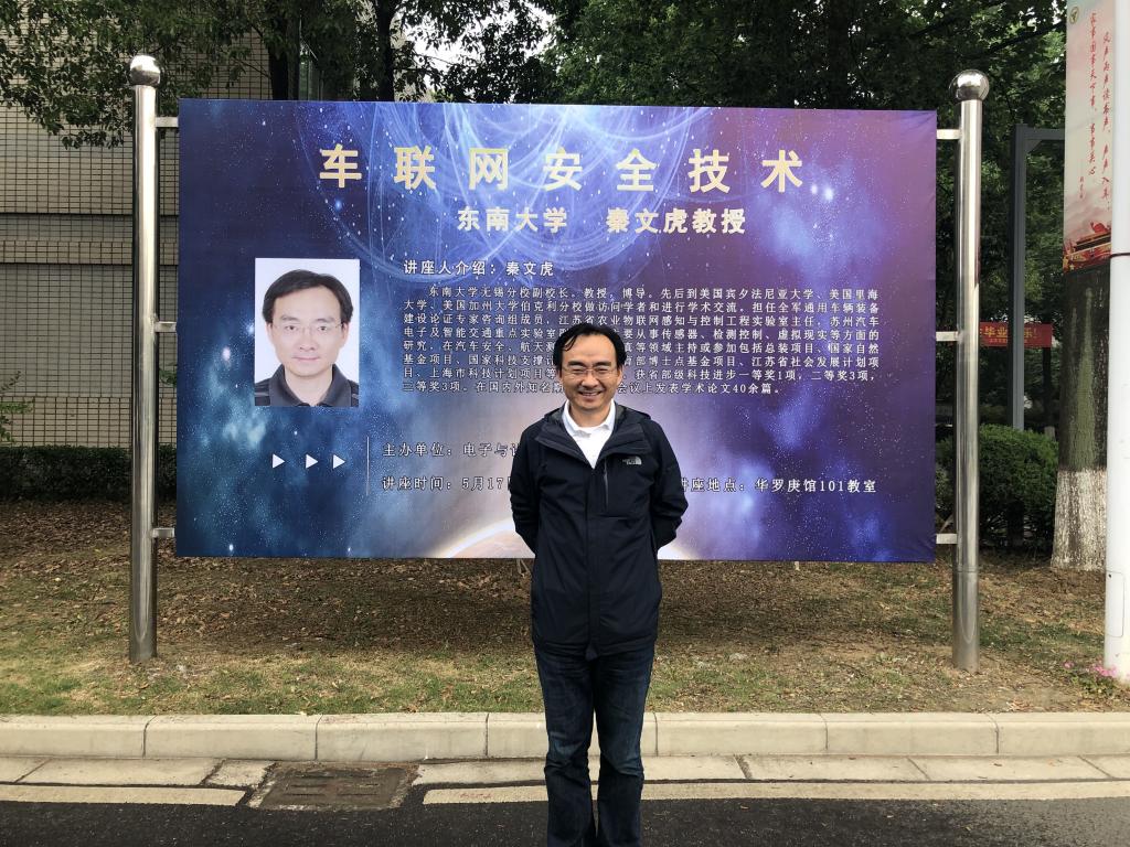 5月17日,电子与计算机工程学院举办“车联网安全技术”专题讲座。520夫妻 博士生导师、无锡分校副校长秦文虎教授担任主讲,电子科学与技术、电子信息工程与自动化专业全体大三学生聆听了讲座,讲座由电子与计算机工程学院党总支书记丁江主持。