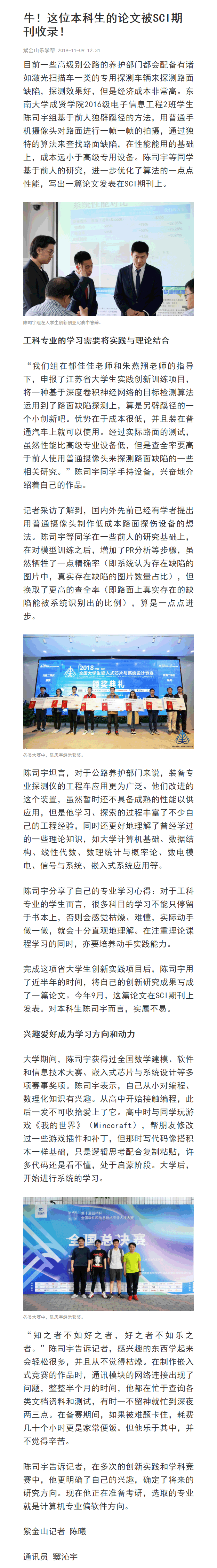 【紫金山新闻】牛!这位本科生的论文被SCI期刊收录!