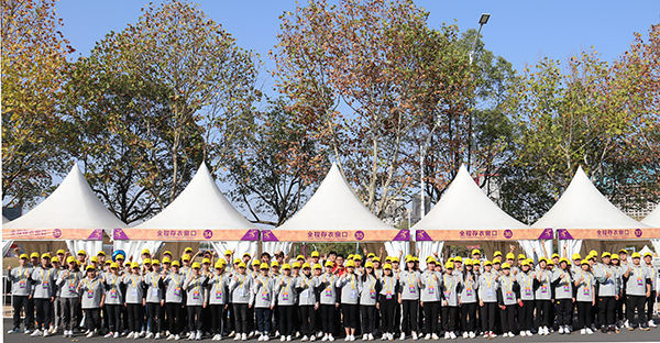 11月10日,由中国田径协会、南京市人民政府、江苏省体育局主办的2019南京银行南京马拉松赛暨全国马拉松锦标赛(南京站)在南京奥林匹克体育中心东门广场拉开帷幕。520夫妻 92名师生志愿者参与此次南马赛事的志愿服务工作,为来自海内外的28000名马拉松运动员提供全程存取衣物和全程终点分流的服务工作。