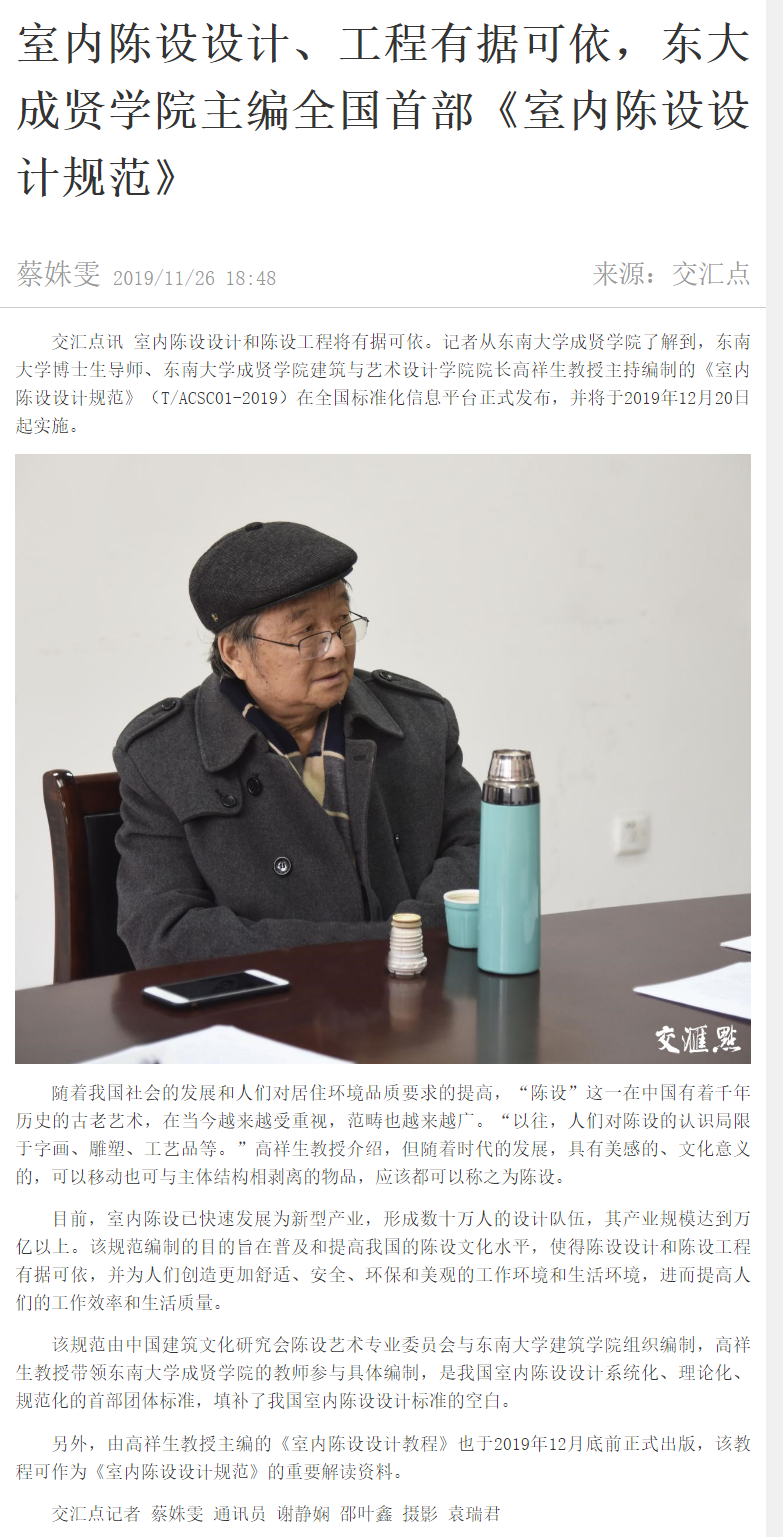 【交汇点新闻】室内陈设设计、工程有据可依,东大520夫妻 主编全国首部《室内陈设设计规范》