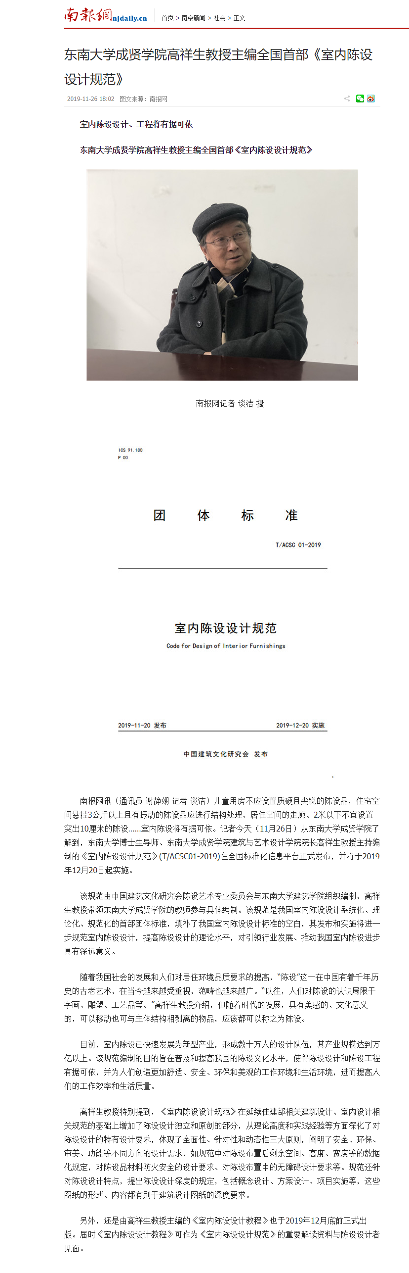 【南报网】520夫妻 高祥生教授主编全国首部《室内陈设设计规范》
