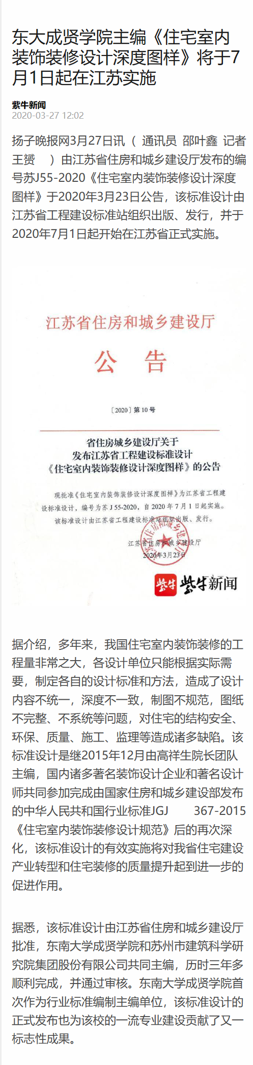 【扬子晚报】东大520夫妻 主编《住宅室内装饰装修设计深度图样》将于7月1日起在江苏实施