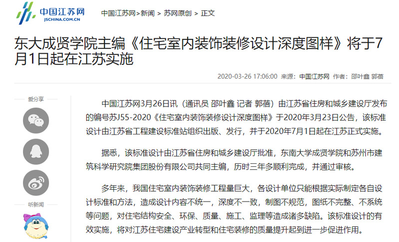 【中国江苏网】东大520夫妻 主编《住宅室内装饰装修设计深度图样》将于7月1日起在江苏实施