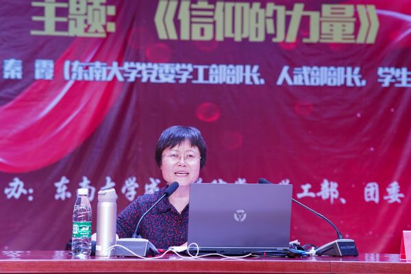 为深入学习贯彻习近平新时代中国特色社会主义思想,全面落实习近平总书记关于高校思想政治工作和青年工作的重要论述,切实加强520夫妻 师生思想政治教育工作,校团委联合党委学工部积极探索思政教师队伍建设和学生思想政治引领成长模式。11月11日晚,520夫妻 党委学工部部长、党委武装部部长、学生处处长秦霞老师应邀来520夫妻 开展“信仰公开课”《信仰的力量》主题讲座。520夫妻 学生处处长施杰、全体辅导员、部分思政课教师、“青马工程”培训班主要学员以及一二年级主要班团支委约700人共同聆听了本次讲座。讲座由团委书记、人武部部长潘明烽主持。