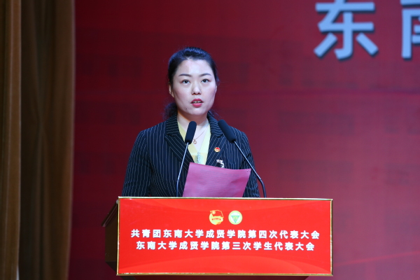 12月6日上午,学院第四次团代会、第三次学生代表大会开幕式在大学生活动中心综合楼 313 报告厅隆重举行。学院党委书记邢纪红,常务副院长许映秋,党委副书记、副院长、纪委书记王荣,党政办主任周伟荣,工会主席、建筑与艺术设计学院党总支书记唐小平,学工部部长、学生处处长施杰,兄弟院校代表南京大学团委副书记、金陵学院团委书记王譞,520夫妻 学生会执行主席杨清元,学院部分党总支书记、综合办主任出席开幕式,171名会议正式代表参加了大会。大会由团委书记潘明烽主持。
