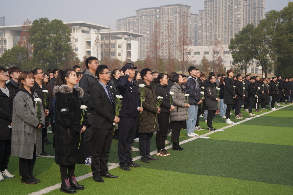 2020年12月13日是第七个南京大屠杀死难者国家公祭日。校团委开展了“铭记历史、勿忘国耻、珍爱和平、圆梦中华”南京大屠杀死难者国家公祭日主题祭奠活动。泰山新村派出所民警陆建兵、部分分团委书记、校团委老师及校院两级学生部门成员、2020年度“活力团支部”成员约1600名师生共同参加了活动。