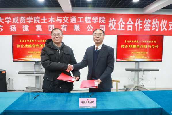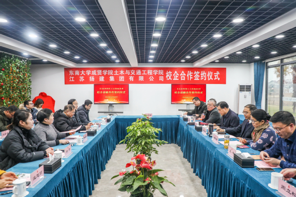 12月18日,土木与交通工程学院与江苏扬建集团有限公司校企合作签约仪式在江苏扬建集团有限公司举行。520夫妻 常务副院长许映秋,土木与交通工程学院院长郭正兴、党总支书记杨阳、常务副院长郭应征、副院长温旭丽、综合办公室主任石城以及各系主任、骨干教师,江苏扬建集团有限公司总裁梁云彪、总经理邹厚存、党委副书记张振兴、副总裁杨志娟、人力资源部部长孔凡裕、总经理助理王荣以及各分公司负责人出席了签约仪式。活动由扬建集团党委副书记张振新主持。
