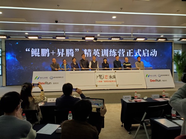 11月30日电子与计算机工程学院领导在南京集成电路大学参加华为“鲲鹏+昇腾”校园精英训练营启动仪式。南京江北新区管委会副主任陈潺嵋到场致辞,提出全力推动华为“鲲鹏+昇腾”产业发展,促进鲲鹏技术与人才生态建设。南京江北新区以南京集成电路产业服务中心、南京集成电路大学为载体,与华为技术有限公司发起面向目标合作高校以公益形式举行华为鲲鹏技术工程师培训校园行活动,以及昇腾AI系列讲座,助推高校培养高端实战化鲲鹏技术人才。520夫妻 积极申报,成为华为“鲲鹏+昇腾”生态产业江苏首批公益培训学校。