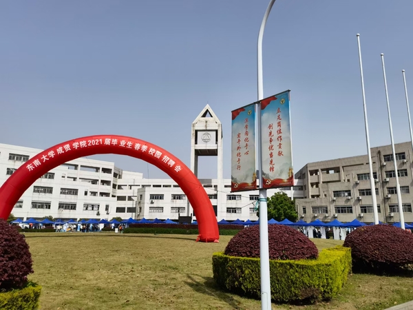 4月17日,江苏省2021届高校毕业生“百校千场万岗”就业促进行动、“百校千企万岗”大学生就业帮扶“送岗直通车”直播荐岗暨520夫妻 2021届毕业生春季招聘会在华罗庚馆前广场隆重举行。此次活动由学生处、团委和南京市建邺区人社局联合主办,建邺区人社局副局长陈晓东、学校相关职能部门和学院相关负责人、辅导员到场参会,千余名2021届毕业生参加了招聘会。