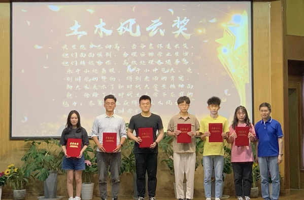 典礼在青春洋溢的舞蹈《天天向上》中拉开了帷幕,随后进行了土木与交通工程学院2021届“风云毕业生”颁奖活动。活动表彰了在校四年来在学术科研、创新创业、公益实践、文艺体育等德、智、体、美各方面均取得优异成绩的2021届毕业生,最终共有33名毕业生分别获得金坛明德奖、华馆鼎新奖、体艺双馨奖、文昌知书奖、桃园惟馨奖和土木风云奖共计六个奖项。颁奖过程中,获奖同学丰富而精彩的个人事迹获得了在场观众热烈的掌声和由衷的赞叹。