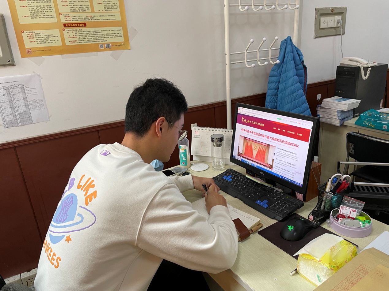 在建党百年之际,在党的十九届六中全会召开之时,我认真学习领会会议精神,从党的百年奋斗和历史经验中汲取前进力量和工作智慧。坚持党史学习是辅导员工作重要的理论基石,坚持在学生中扎实有效开展党史学习是育人的重要抓手。