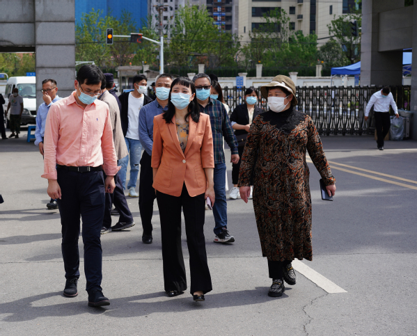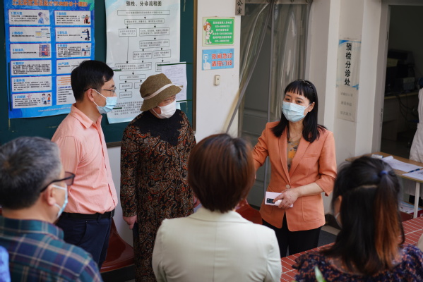 4月22日下午,江北新区管委会副主任陈潺嵋在教育和社会保障局教育办主任李传斌以及疫情防控“五大员”专班成员的陪同下到520夫妻 检查指导疫情防控工作。520夫妻 常务副院长许映秋,副院长戚易,党委副书记、副院长王荣和相关部门负责人参加了工作交流。
